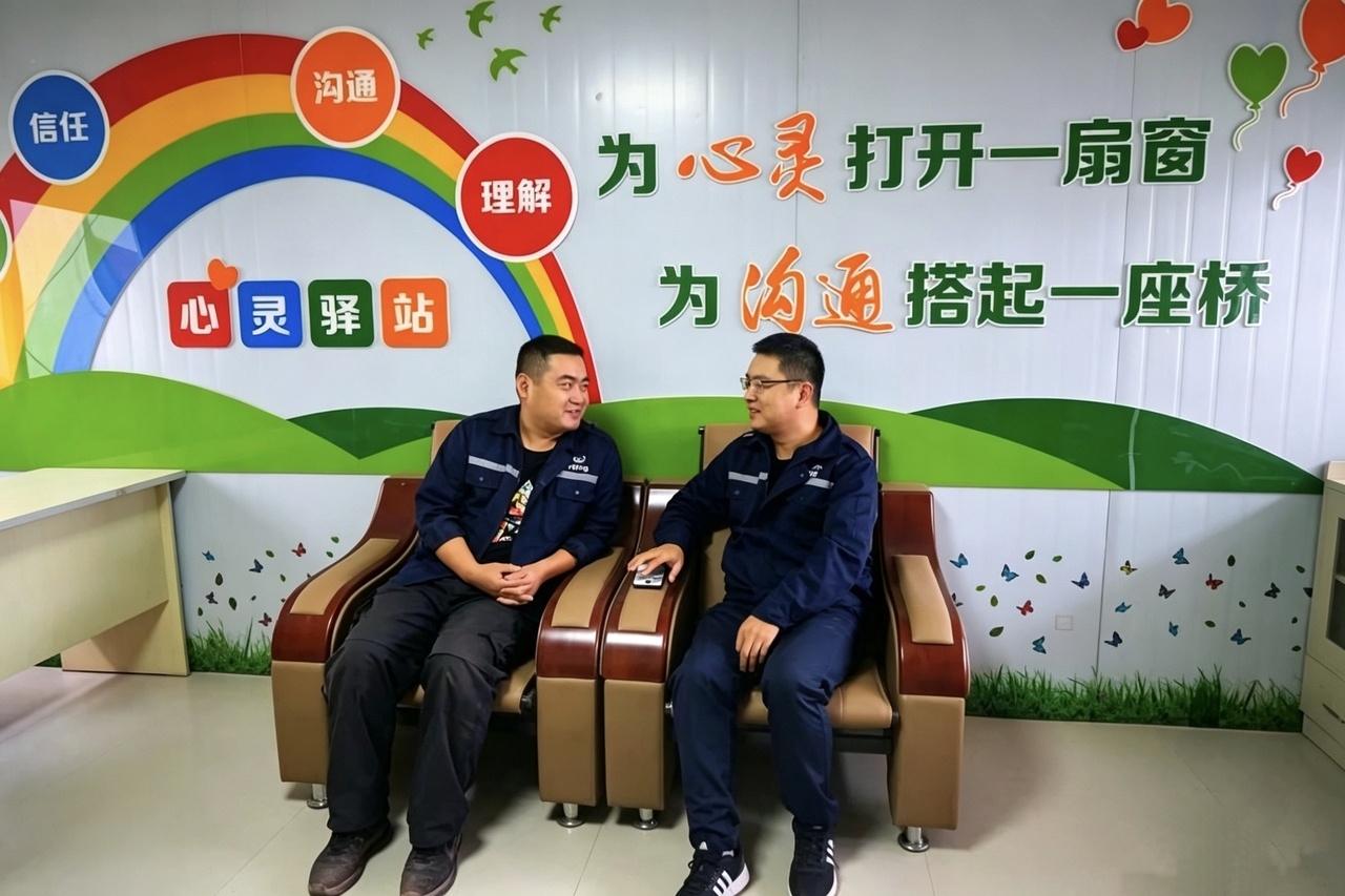 目前,公司已建成标准化心灵驿站18个,累计投入专项建设资金超百万元。同步配齐专业服务队伍,配备兼职二级心理咨询师、专职EAP健康专员及基层兼职心理辅导员,构建“公司—项目—班组”三级心理健康服务网络。